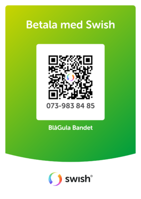 I väntan på att vår webbshop skall bli helt klar så sker all betalning via SWISH direkt till BlåGula bandet (Maria Byqvist). Se bild nedan. Betala för det antal band du önskar beställa och glöm inte att lägga på 58:- i porto och leveranskostnader. Portot är detsamma oavsett antal.